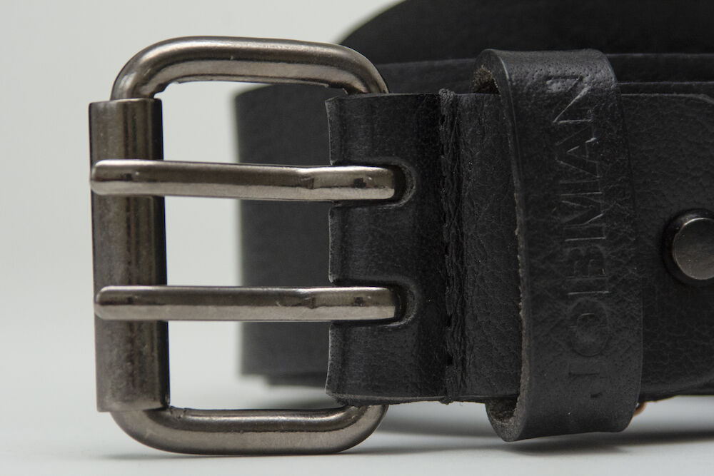 Functionele lederen riem met metalen gesp. De riem is verkrijgbaar in 90 cm en 120 cm en sluit mooi aan op alle broeken in de Jobman collectie.